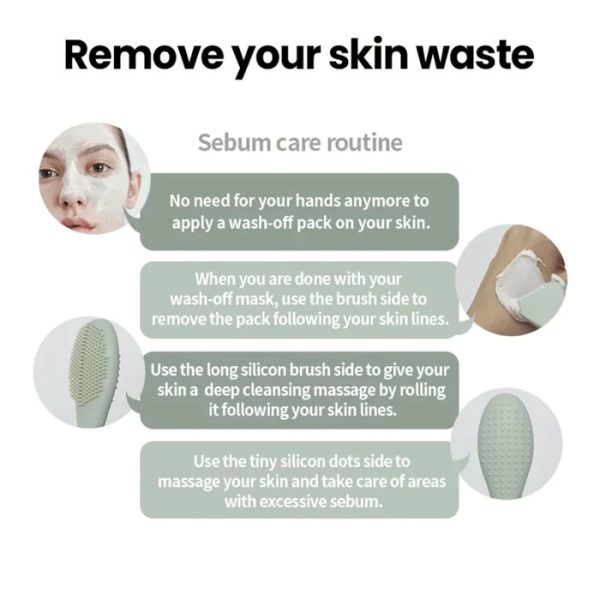 Η βούρτσα σιλικόνης με τις λεπτές μύτες αφαιρεί τα κεφάλια των χοίρων και τα νεκρά κύτταρα του δέρματος που φράσσονται στους πόρους. Η στρογγυλεμένη πλευρά του κεφαλιού μπορεί να χρησιμοποιηθεί ως μασάζ κάνοντας κύλιση γύρω από το πηγούνι, τα χείλη και τις περιοχές της μύτης. Το πινέλο σιλικόνης εφαρμόζει τη μάσκα λάσπης ομοιόμορφα στο δέρμα.