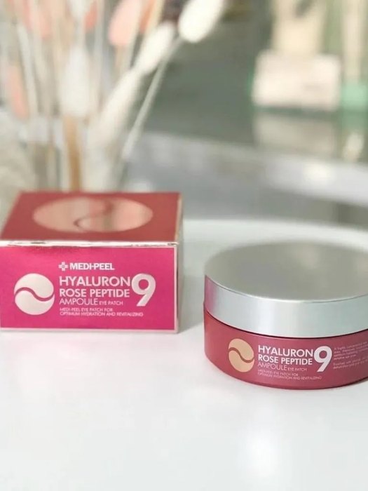 Τα Hyaluron Rose Peptide 9 patches της MediPeel είναι ενυδατικά επιθέματα ματιών με εκχυλίσματα 3 τύπων τριαντάφυλλων, 5 τύπων μούρων και 9 τύπων πεπτιδίων. Το σύμπλεγμα 9 πεπτιδίων εμποδίζει την καταστροφή των μορίων κολλαγόνου και ελαστίνης στα κύτταρα της επιδερμίδας, επιβραδύνοντας έτσι τη διαδικασία γήρανσης, αποκαθιστά την ελαστικότητα του δέρματος, διατηρεί την ισορροπία υγρασίας, αποκαθιστά το κατεστραμμένο δέρμα Το υαλουρονικό οξύ διεισδύει στα βαθύτερα στρώματα της επιδερμίδας και συγκρατεί εκεί την απαραίτητη ποσότητα υγρασίας, βοηθά στην εξομάλυνση του δέρματος, του δίνει υγιή, λαμπερή όψη, διεγείρει τη σύνθεση ελαστίνης και κολλαγόνου.