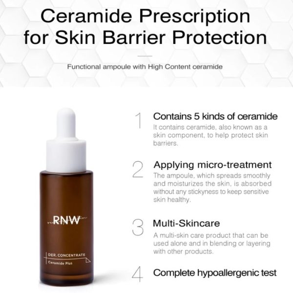 Αναζωογονητικός ορός με κεραμίδια RNW Der. Το Concentrate Ceramide Plus ενυδατώνει σε βάθος και θρέφει το δέρμα, προστατεύει από το στρες και ενεργοποιεί τις διαδικασίες αναγέννησης της επιδερμίδας. Ο ορός αποκαθιστά τον λιπιδικό φραγμό, ενισχύει την ανοσία του δέρματος, αυξάνει τις προστατευτικές λειτουργίες του δέρματος, βοηθά στη διατήρηση της υγρασίας στην επιδερμίδα, διατηρεί το δέρμα ενυδατωμένο, ελαστικό και υγιές.
