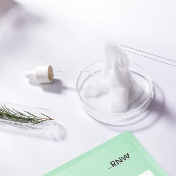 Η sheet mask RNW καταπραΰνει το δέρμα, βοηθά στην εξισορρόπηση της παραγωγής σμήγματος, συσφίγγει τους πόρους και βελτιώνει τον τόνο. Ο συνδυασμός εκχυλίσματος centella asiatica και ελαίου τεϊόδεντρου επιστρέφει στο δέρμα μια αίσθηση άνεσης, παρέχει βέλτιστη ενυδάτωση και βελτιώνει την κατάσταση του προβληματικού δέρματος. Η πανθενόλη και η βεταΐνη, καθώς και η αλλαντοΐνη, η οποία διεγείρει την ανανέωση του δέρματος, βοηθούν επίσης στην καταπραϋντική και ενυδάτωση του δέρματος.