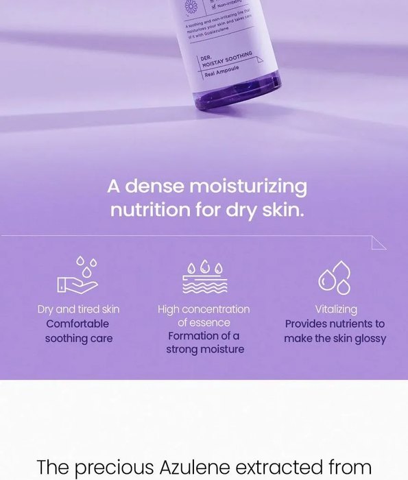 Το αζουλένιο είναι ένα πολύτιμο συστατικό υψηλής συγκέντρωσης που εξάγεται από το χαμομήλι. Βοηθά στην καταπράυνση του δέρματος και της ερυθρότητας.