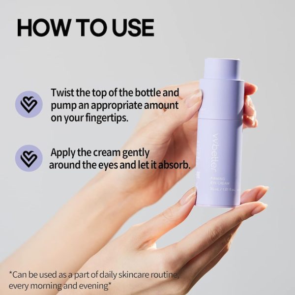 Εφαρμόστε την κρέμα με τα δάχτυλά σας στην περιοχή των ματιών πρωί και βράδυ με ελαφριές κινήσεις. Είναι πολύ βασικό να απλώνετε την κρέμα απαλά και με ταμποναριστές κινήσεις.